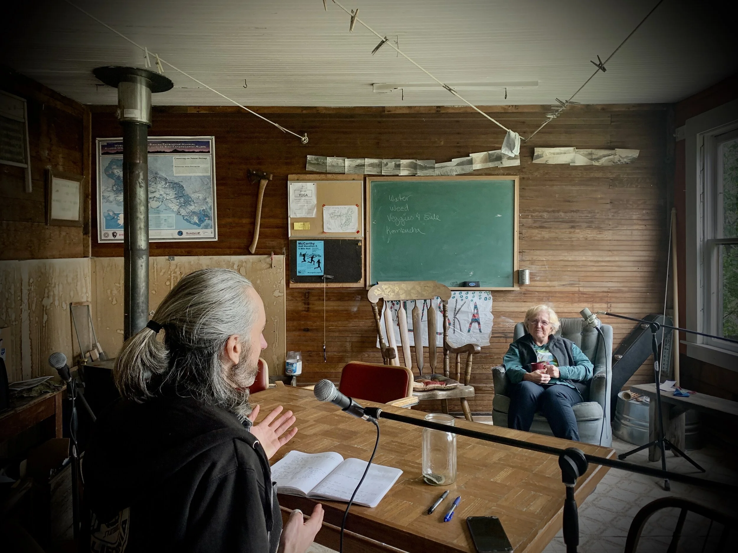 We got comfortable and engaged with Sally’s stories for several hours, enchanted by her storytelling. It was a memorable experience. In the background you’ll hear the songs of swallows and bush planes circling, familiar WMC sounds. We interviewed Sally from the Classroom in the Old Hardware Store, where she shares her first experience with the dilapidated old building, back in 1976 during the Fourth of July Centennial Celebration.